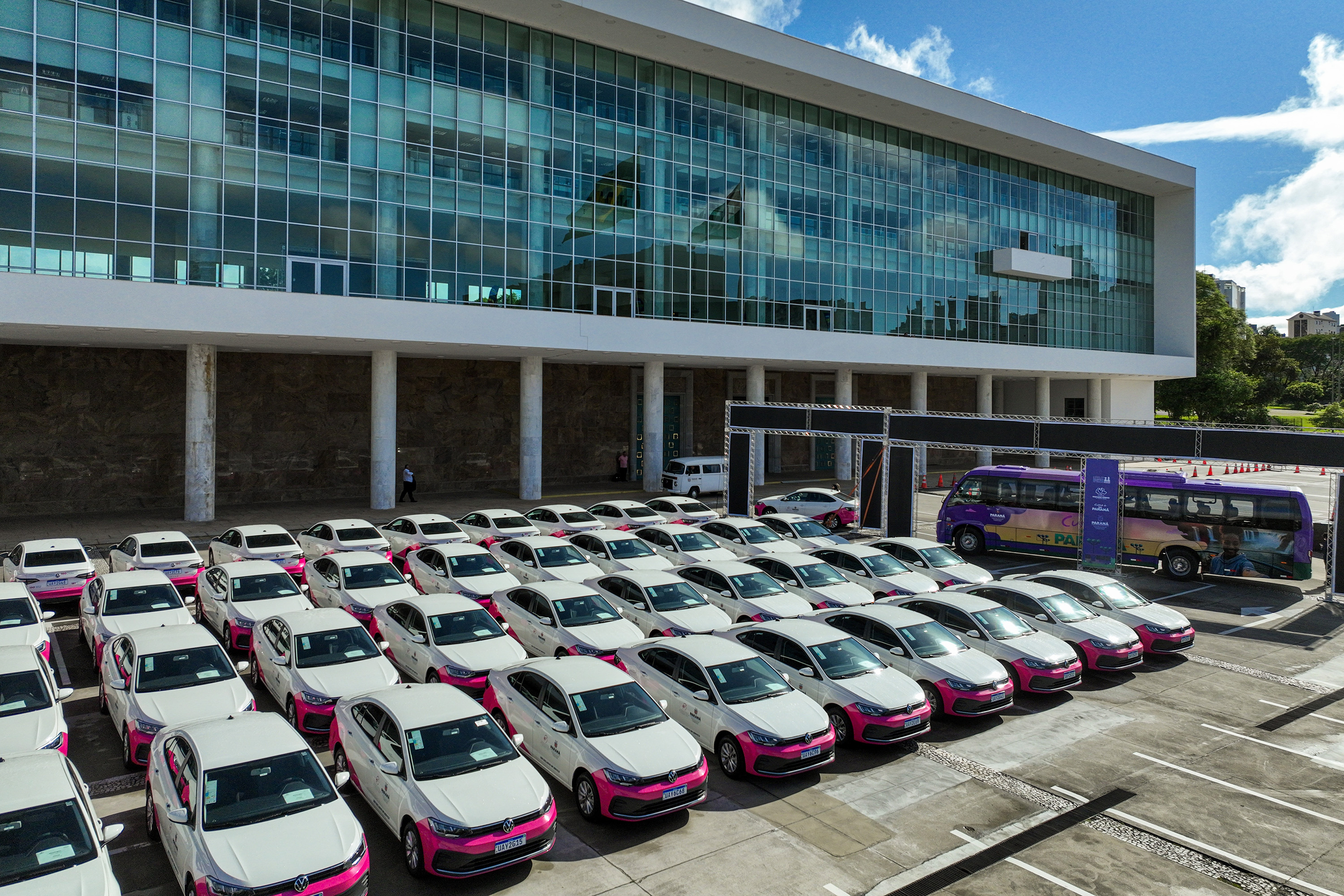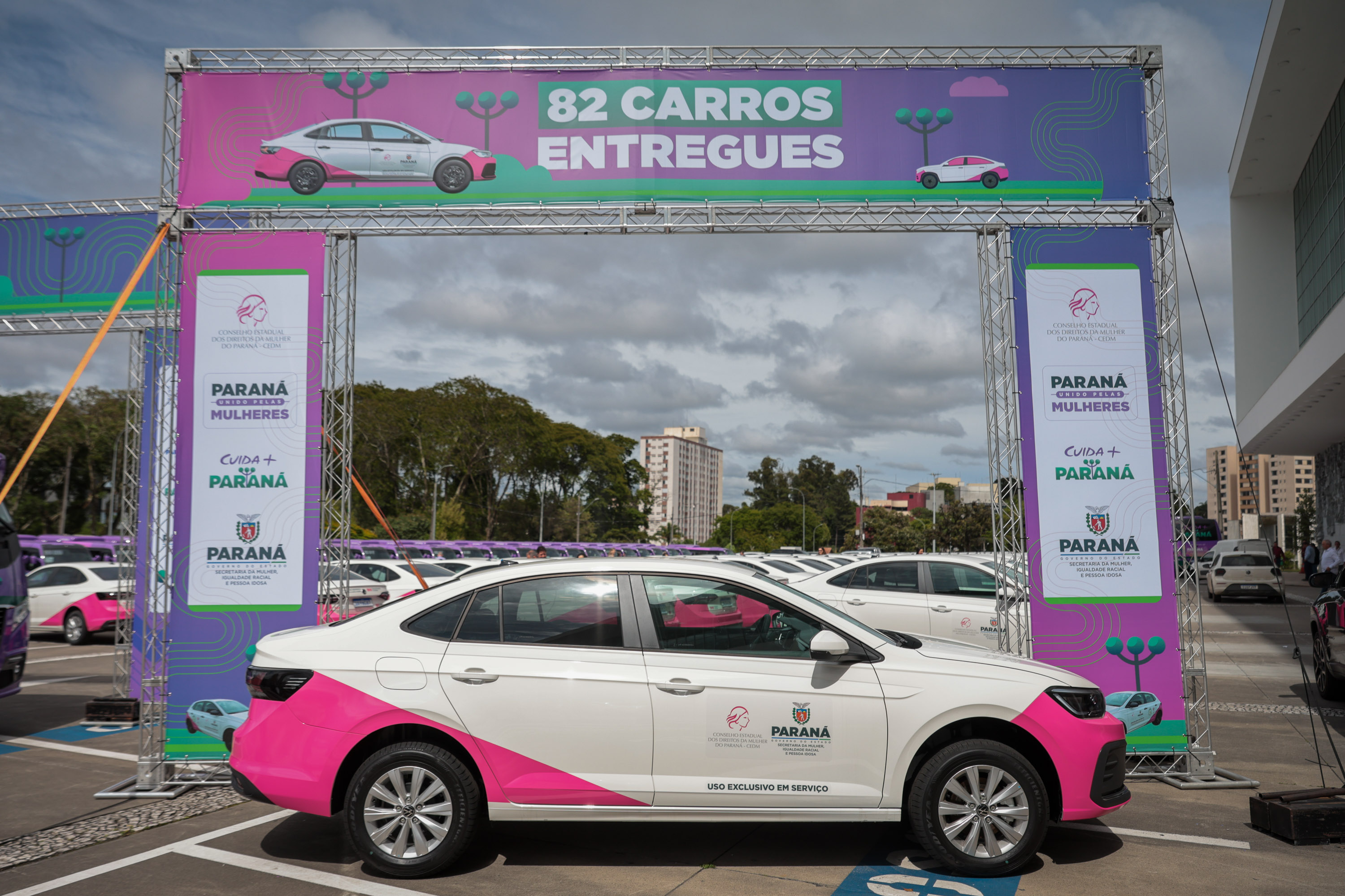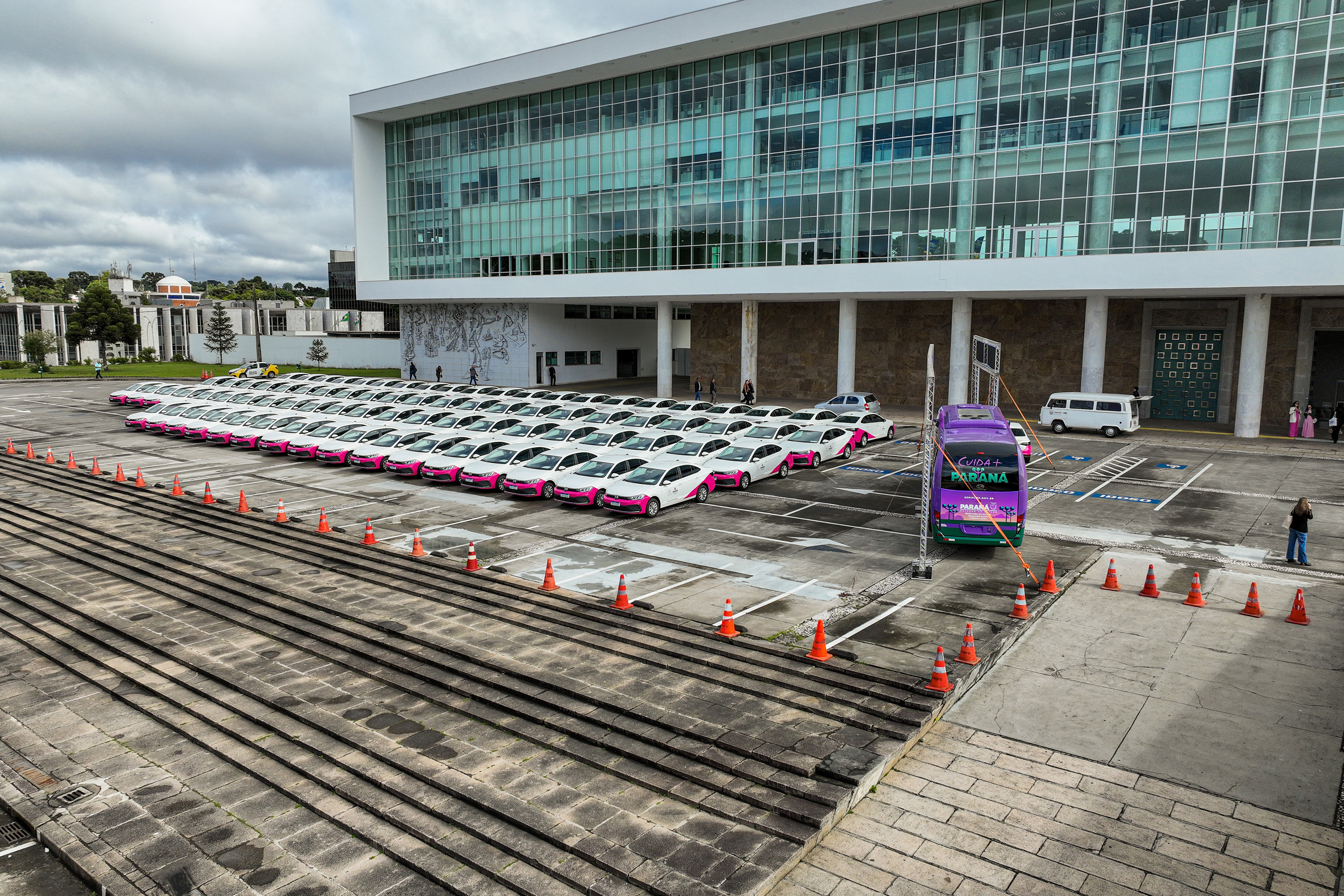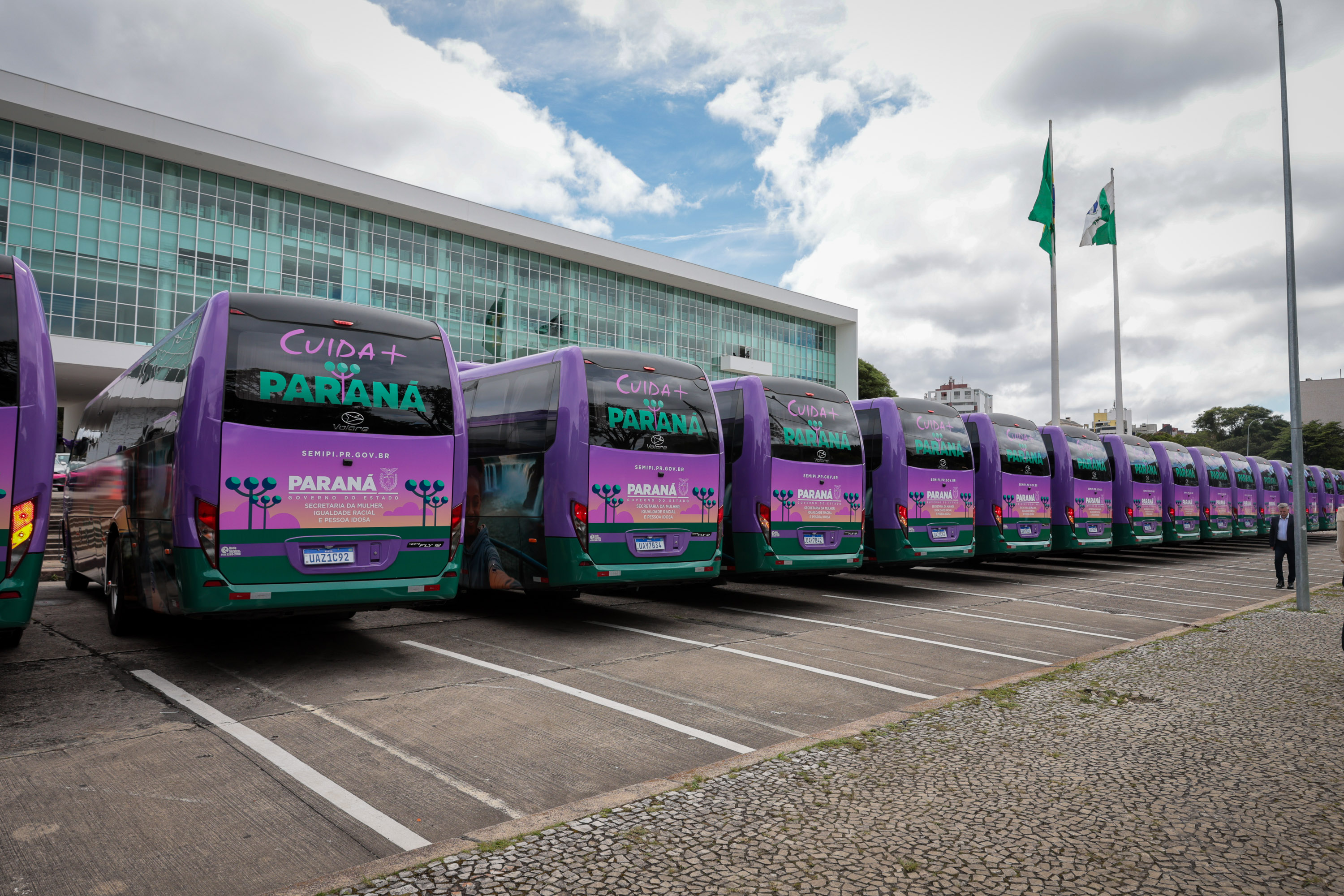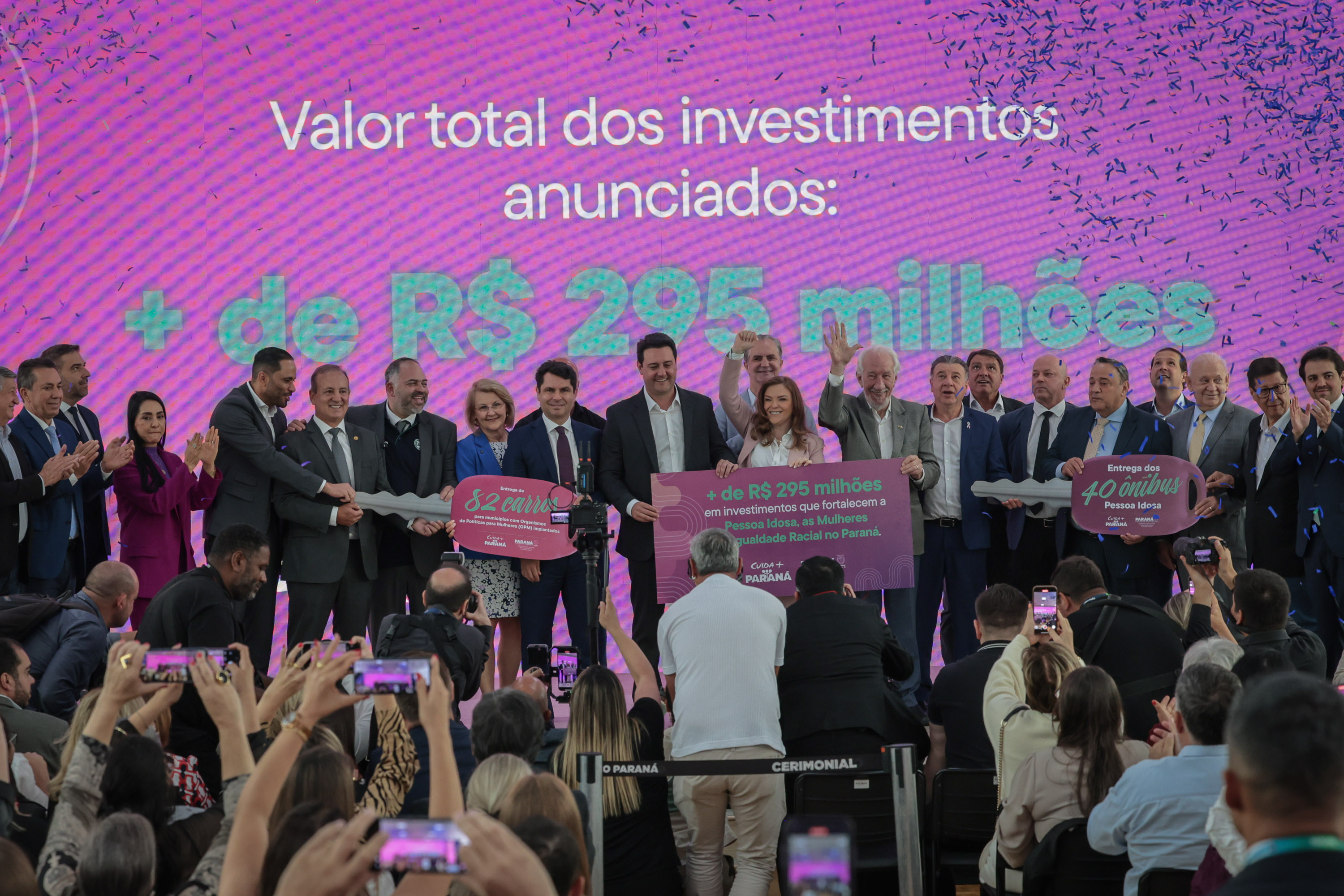 O governador Carlos Massa Ratinho Junior participa nesta segunda-feira (24) do II Encontro Estadual de Gestores de Políticas do Cuidado, no Palácio Iguaçu. Neste ato, são entregues 40 ônibus que atenderão a política para idosos e 82 carros para política da mulher. Foto: Geraldo Bubniak/AEN