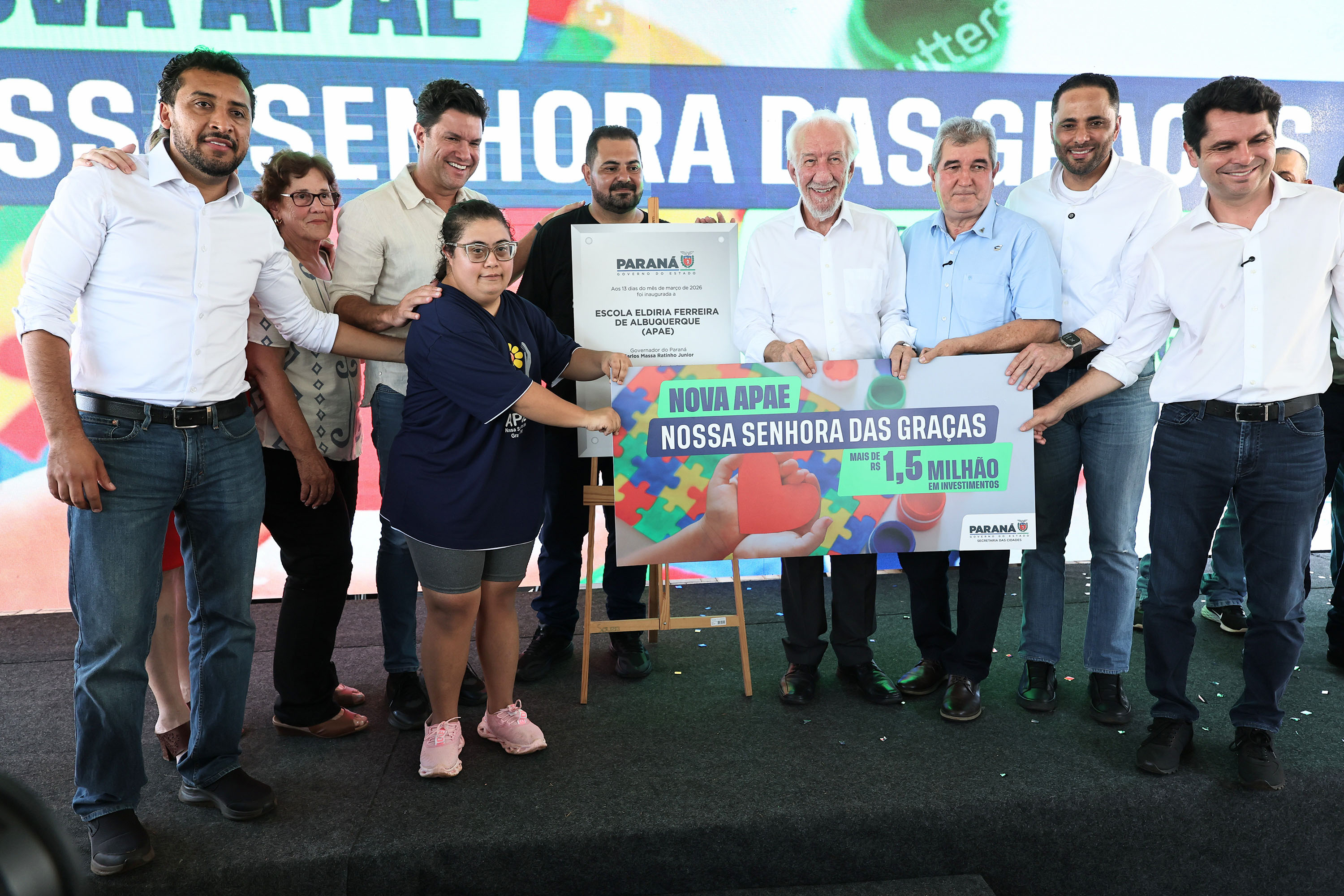 O vice-governador Darci Piana inaugurou nesta sexta-feira (13) a nova sede da Associação de Pais e Amigos dos Excepcionais (Apae) de Nossa Senhora das Graças, no Norte do Paraná. É a terceira escola de educação especial entregue somente em 2026 e a quinta construída pelo Estado, dentro de um pacote de 26 unidades. O investimento do Governo foi R$ 1,5 milhão e integra uma iniciativa inédita de investimento nas Apaes. Houve contrapartida de R$ 95 mil do município.