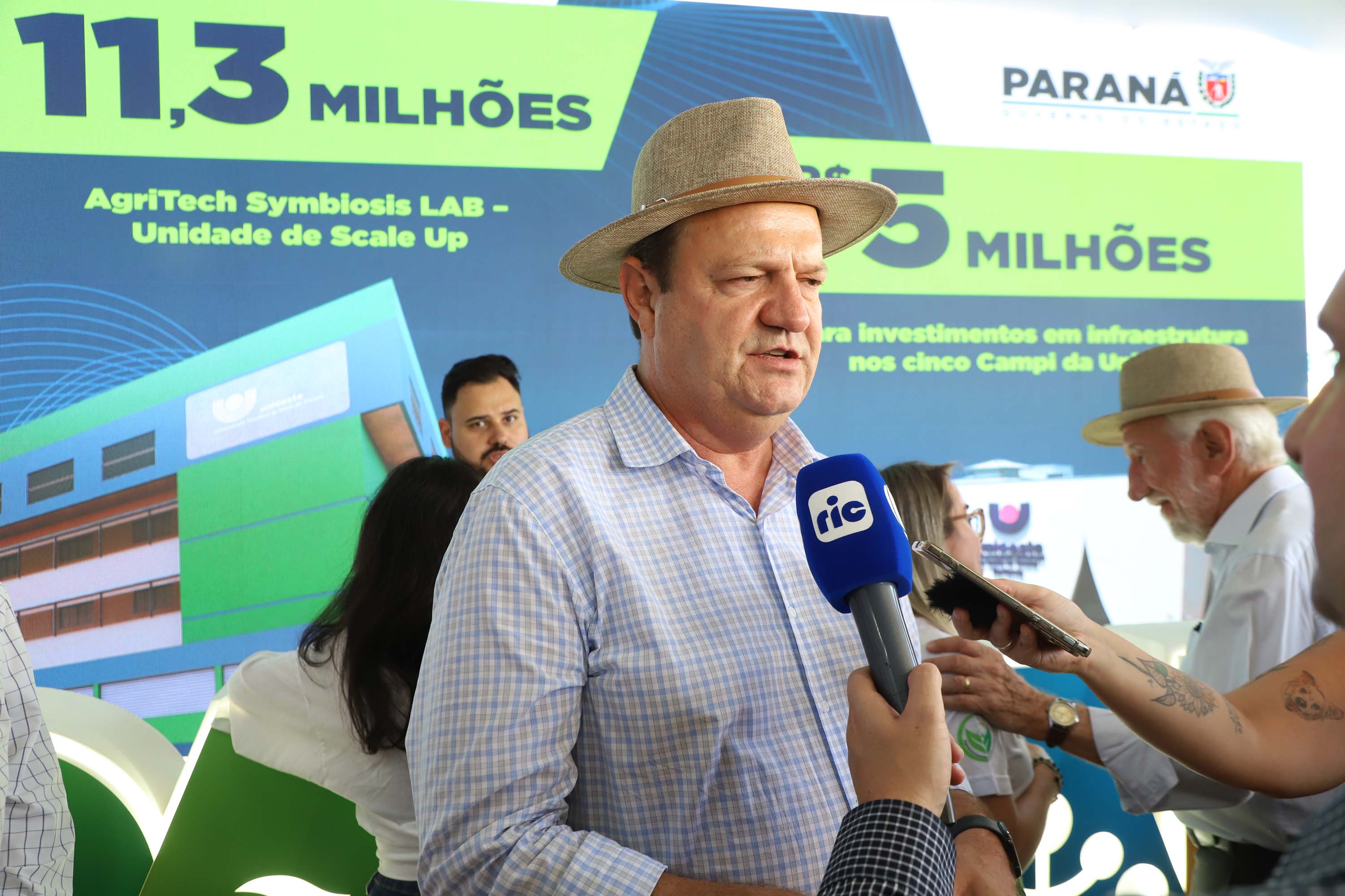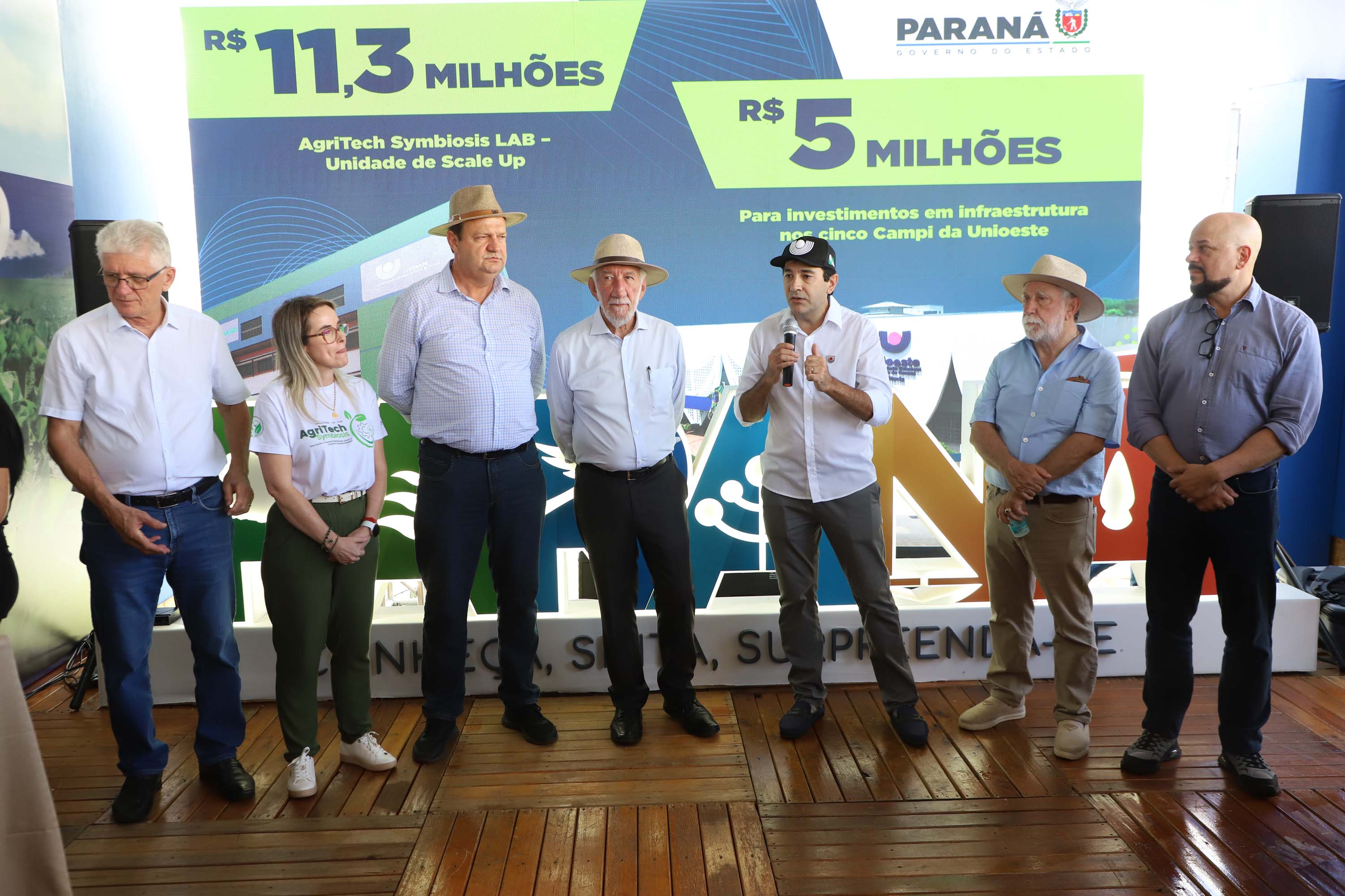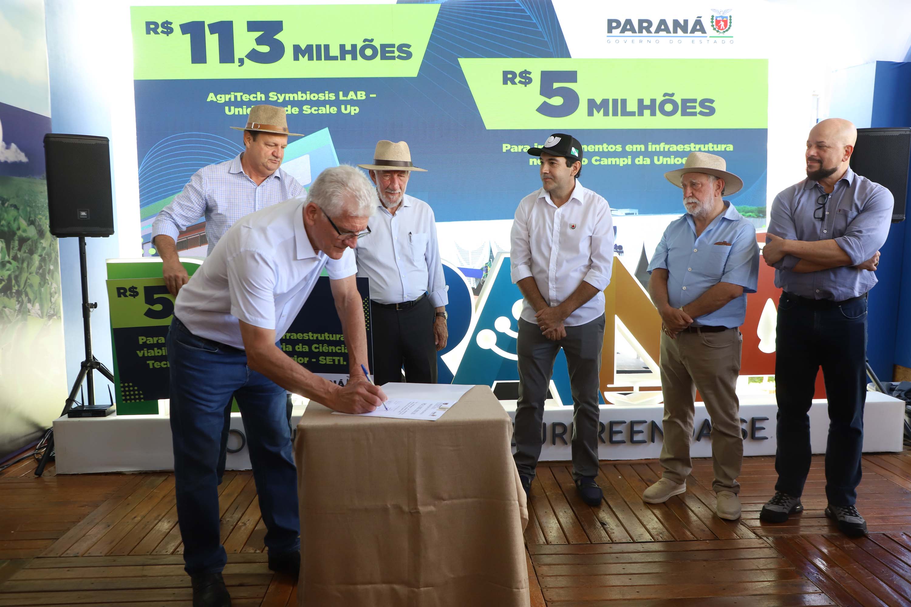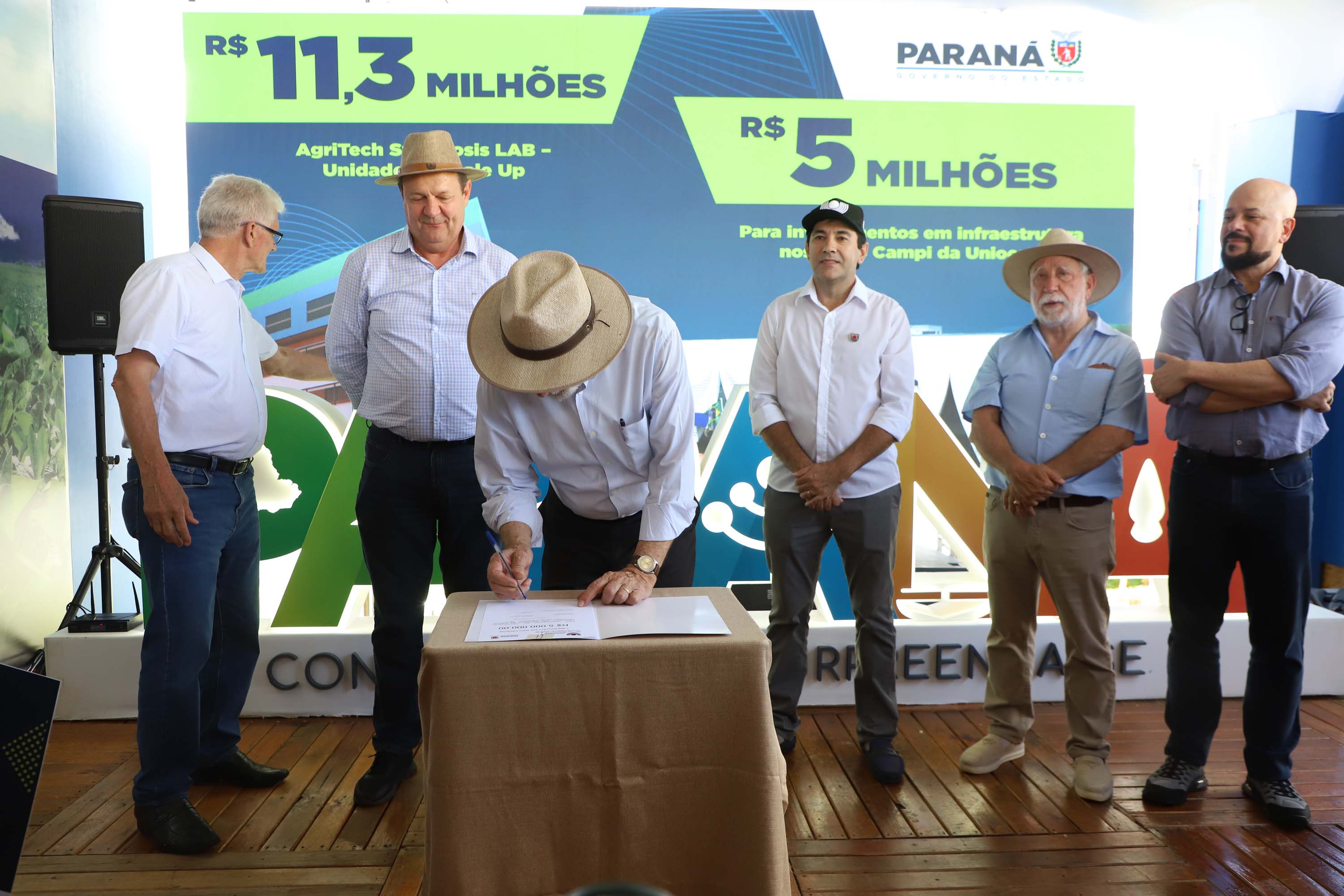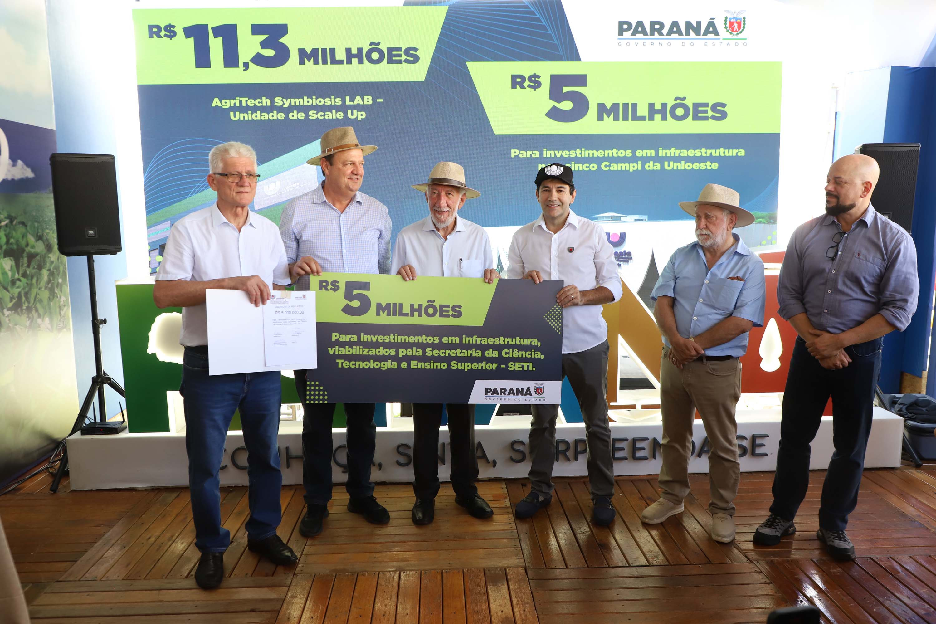 O governador em exercício Darci Piana anunciou nesta terça-feira (10) um investimento de R$ 16 milhões para fortalecer instrumentos de pesquisa e ciência da Universidade Estadual do Oeste do Paraná (Unioeste) para os próximos anos. A assinatura foi feita no estande da Unioeste, em parceria com a Secretaria de Ciência, Tecnologia e Ensino Superior (Seti) e a Fundação Araucária, no Show Rural Coopavel.