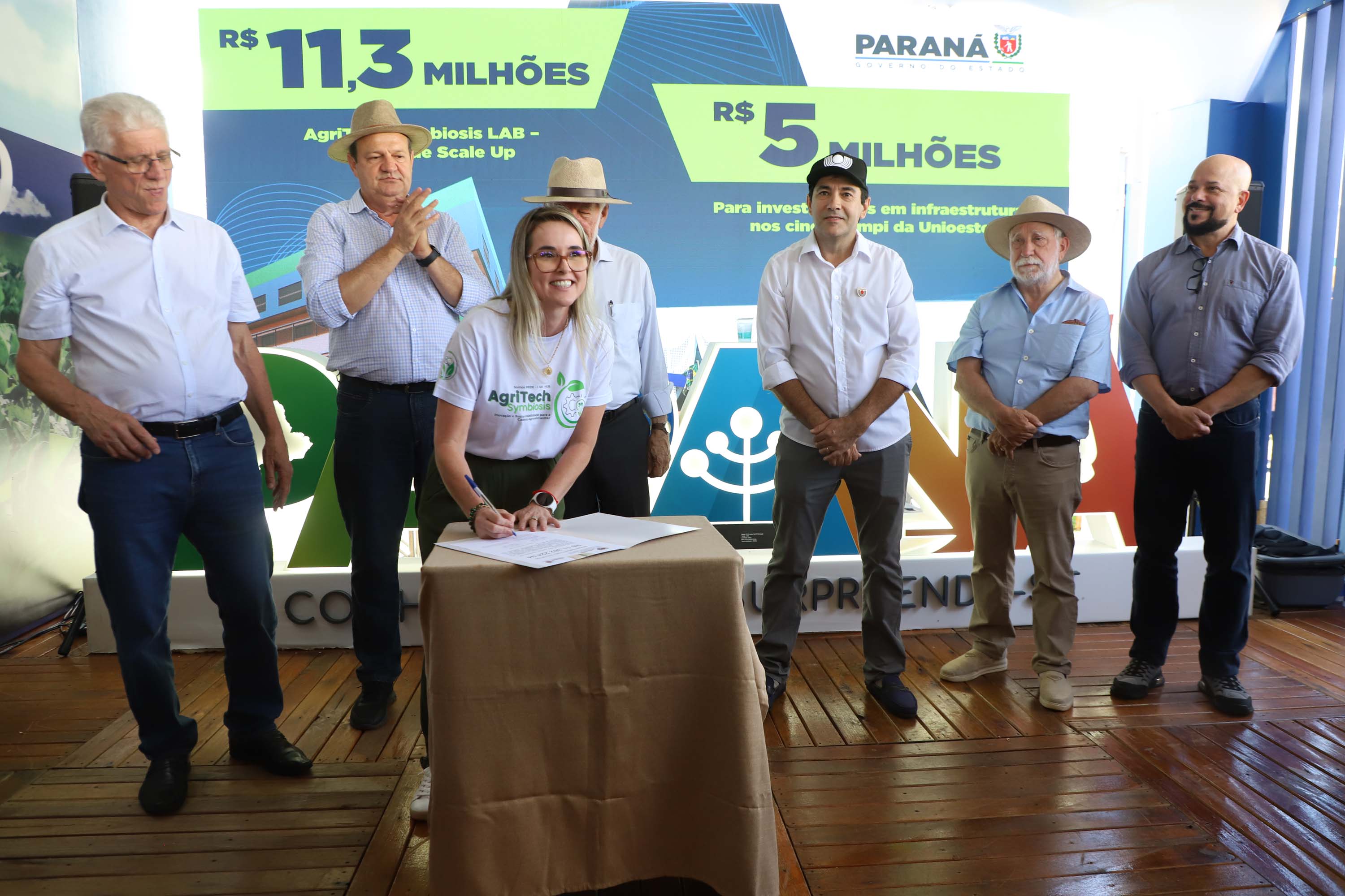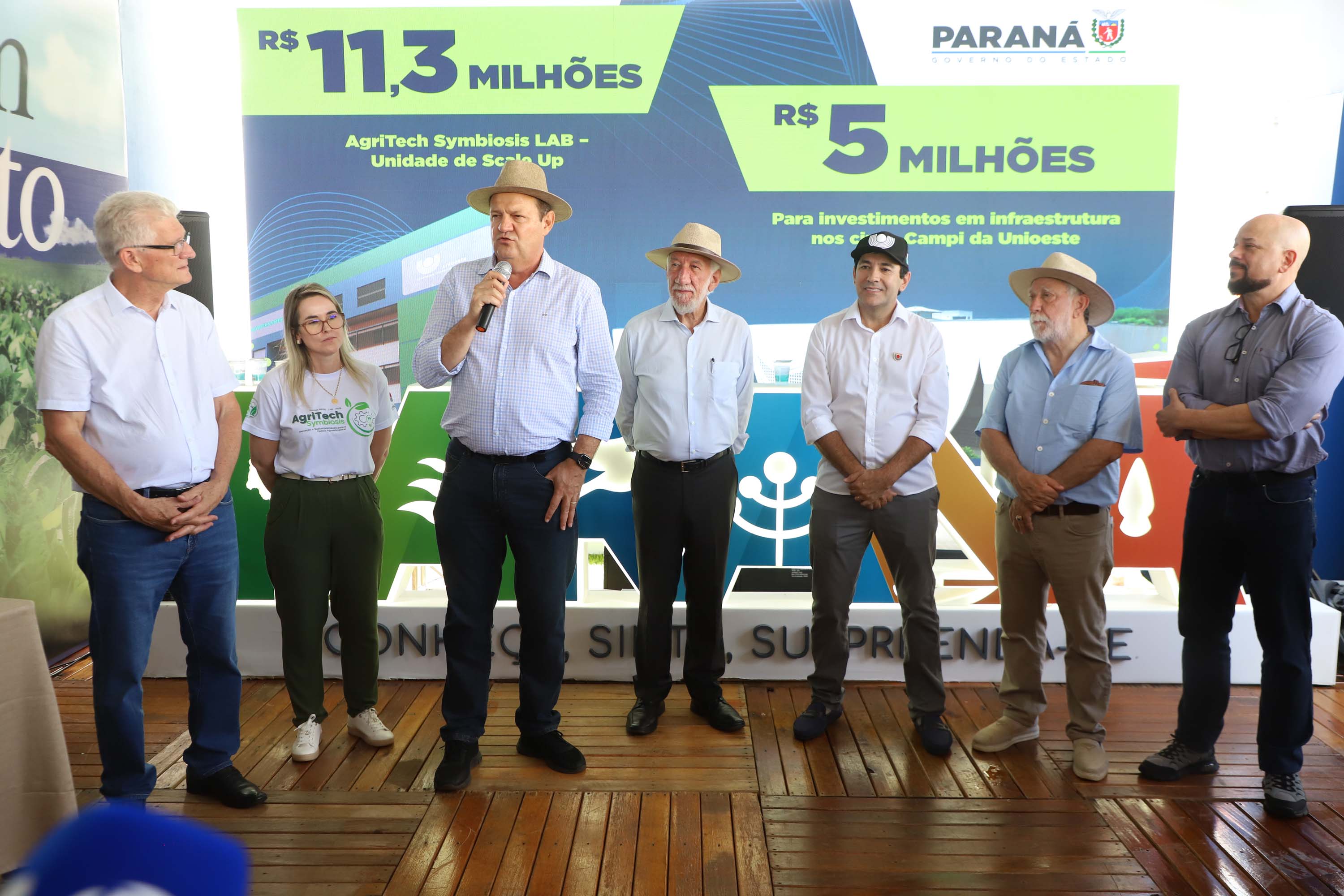 AGRITECH – Entre os destaques esteve o lançamento e a assinatura da ordem de serviço para a obra do AgriTech Symbiosis LAB – Unidade de Scale Up. O novo prédio será construído em Toledo e contará com investimento de R$ 11,3 milhões, viabilizado com recursos do governo estadual. A proposta é transformar o espaço em um centro de referência no desenvolvimento de processos e produtos voltados à bioeconomia e à sustentabilidade da cadeia agroalimentar em nível nacional.
