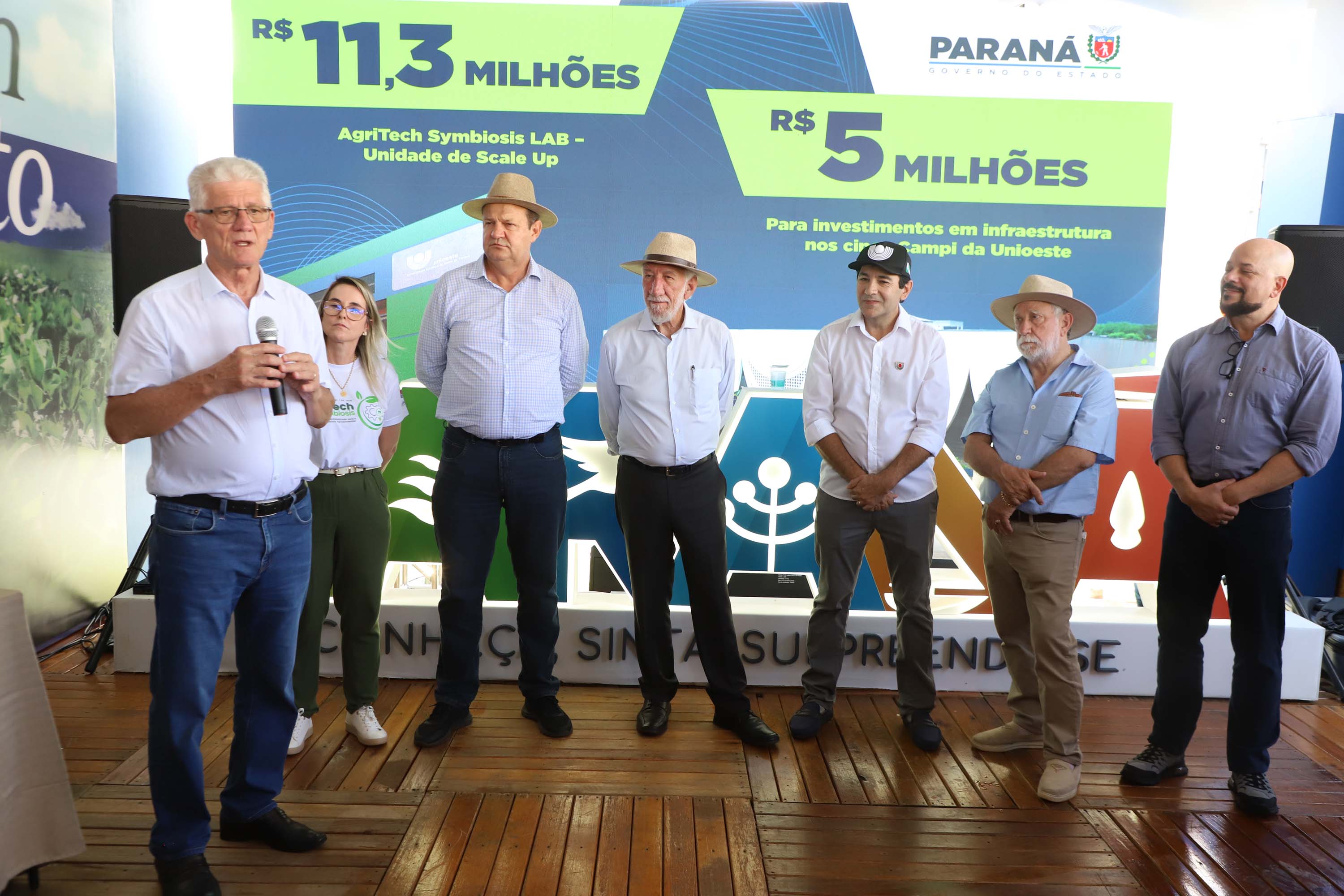 A cerimônia contou com a presença do secretário de de Ciência, Tecnologia e Ensino Superior, Aldo Nelson Bona, do secretário da Fazenda, Norberto Ortigara e do reitor em exercício, Gilmar Ribeiro de Mello. Os anúncios envolvem melhorias em todas as cinco unidades (Cascavel, Toledo, Francisco Beltrão, Foz do Iguaçu e Marechal Cândido Rondon) e na Reitoria, além da construção de um novo edifício em Toledo voltado ao desenvolvimento de projetos para a produção de alimentos.