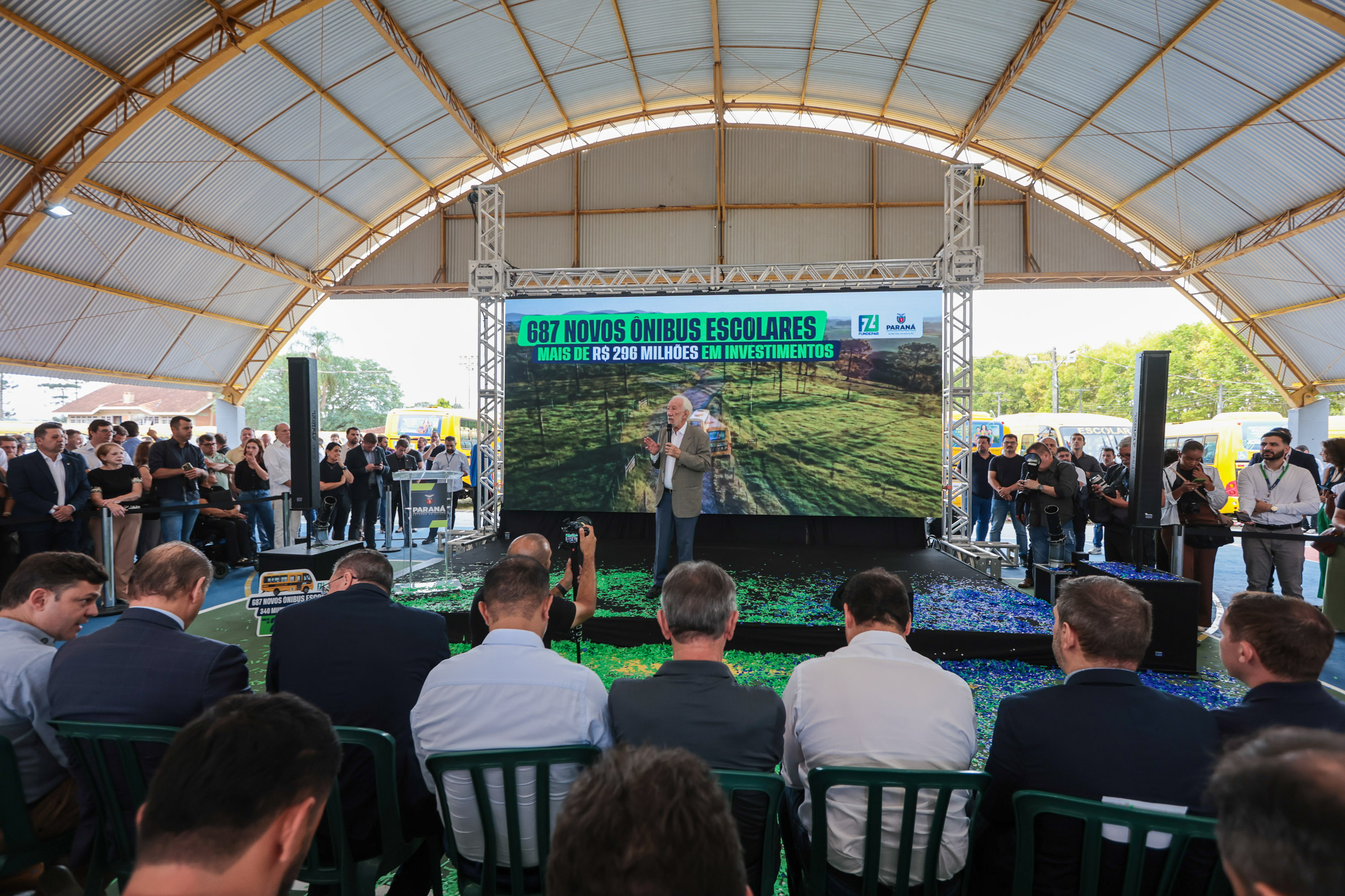 O Governo do Estado iniciou nesta terça-feira (24) a entrega de 687 ônibus escolares que vão atender 340 municípios paranaenses. Nesta primeira etapa, foram repassados 232 veículos para 179 cidades, cuja entrega foi feita pelo vice-governador Darci Piana e o secretário estadual da Educação, Roni Miranda, no Colégio Estadual Newton Freire Maia, em Pinhais, na Região Metropolitana de Curitiba.