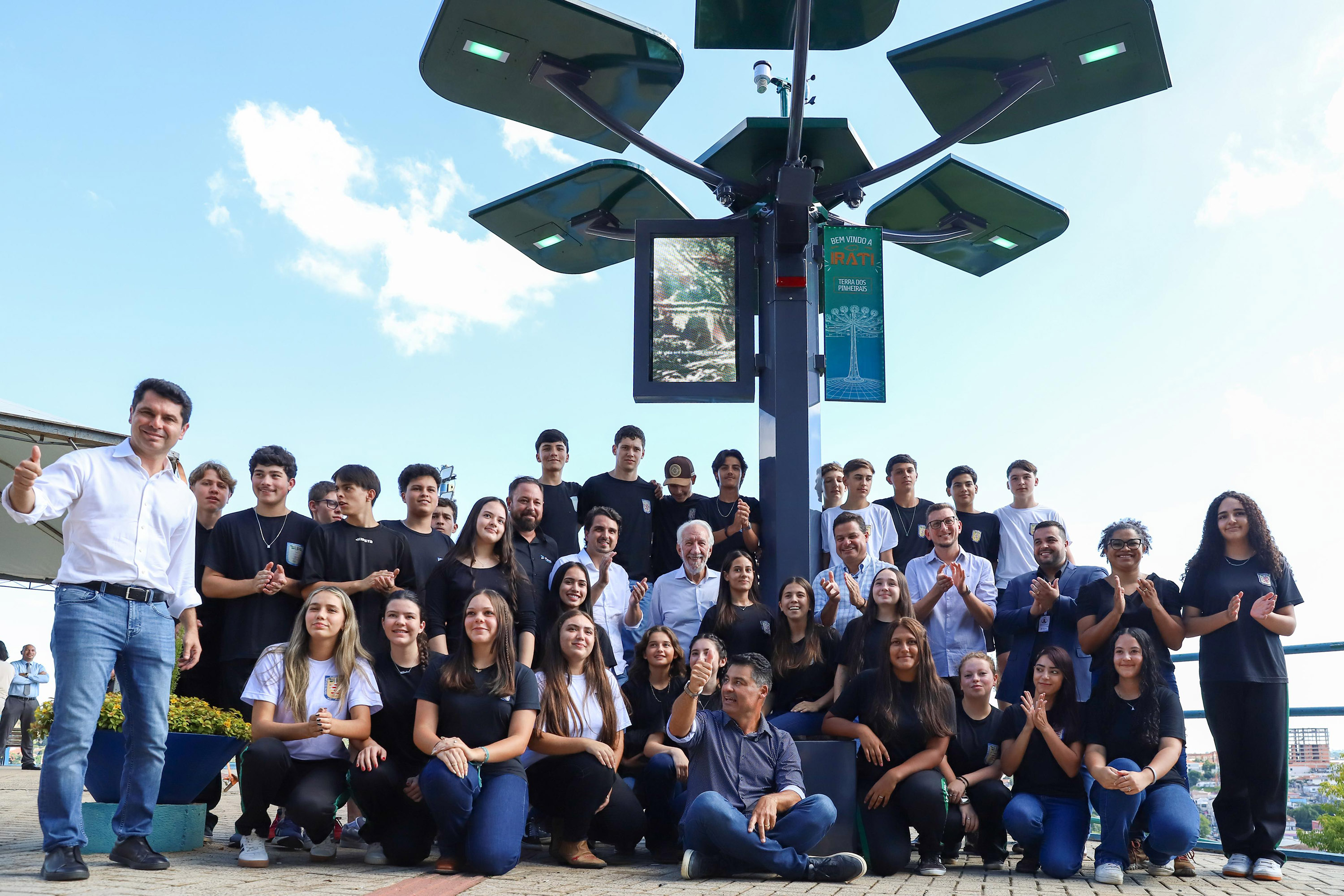 ARAUCÁRIA DIGITAL — Logo depois da solenidade no Posto Avançado, o governador em exercício Darci Piana participou de outra inauguração, desta vez da Araucária Digital. A iniciativa da prefeitura de Irati é um equipamento semelhante a uma araucária, situado no Morro da Santa, ponto turístico e religioso da cidade.