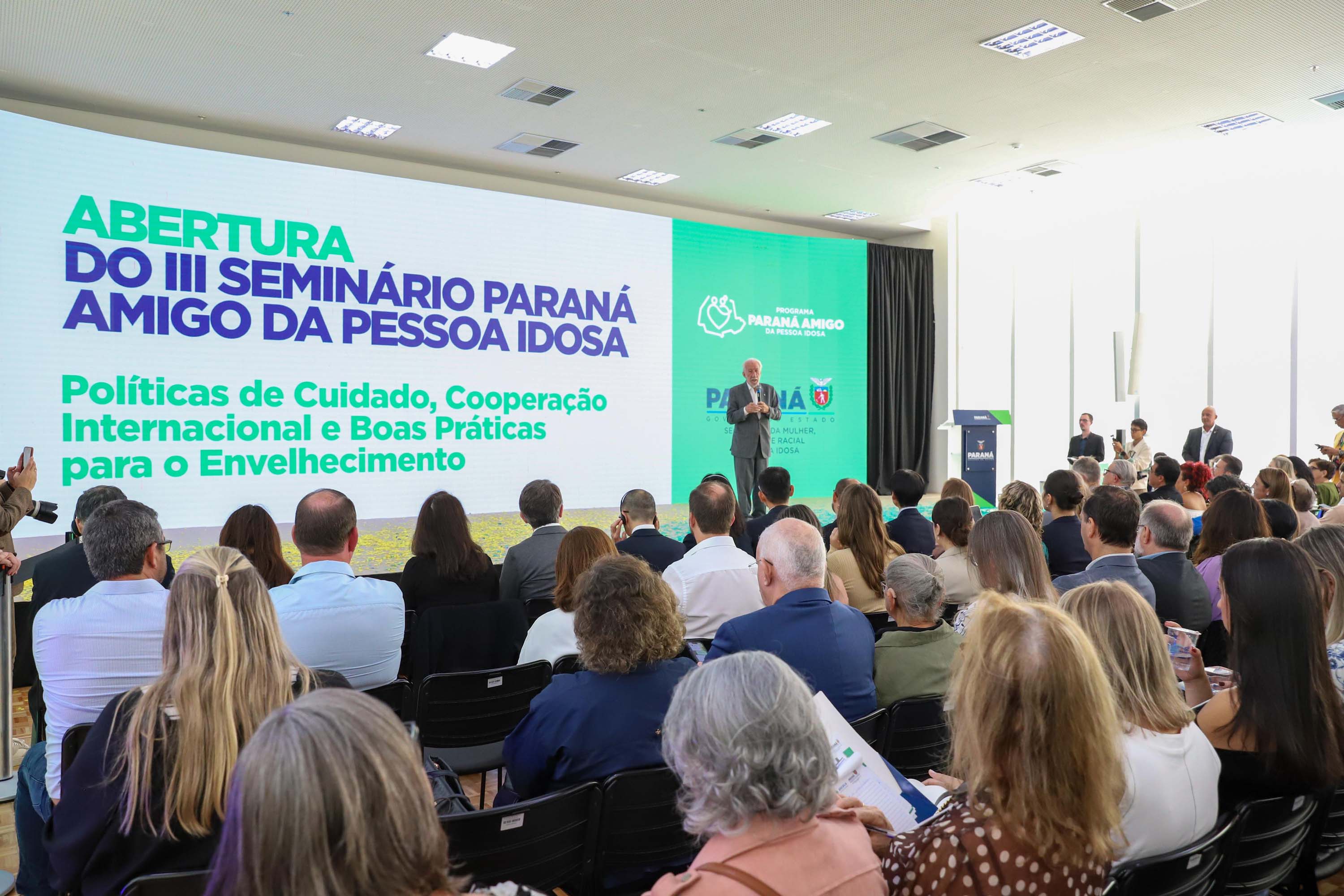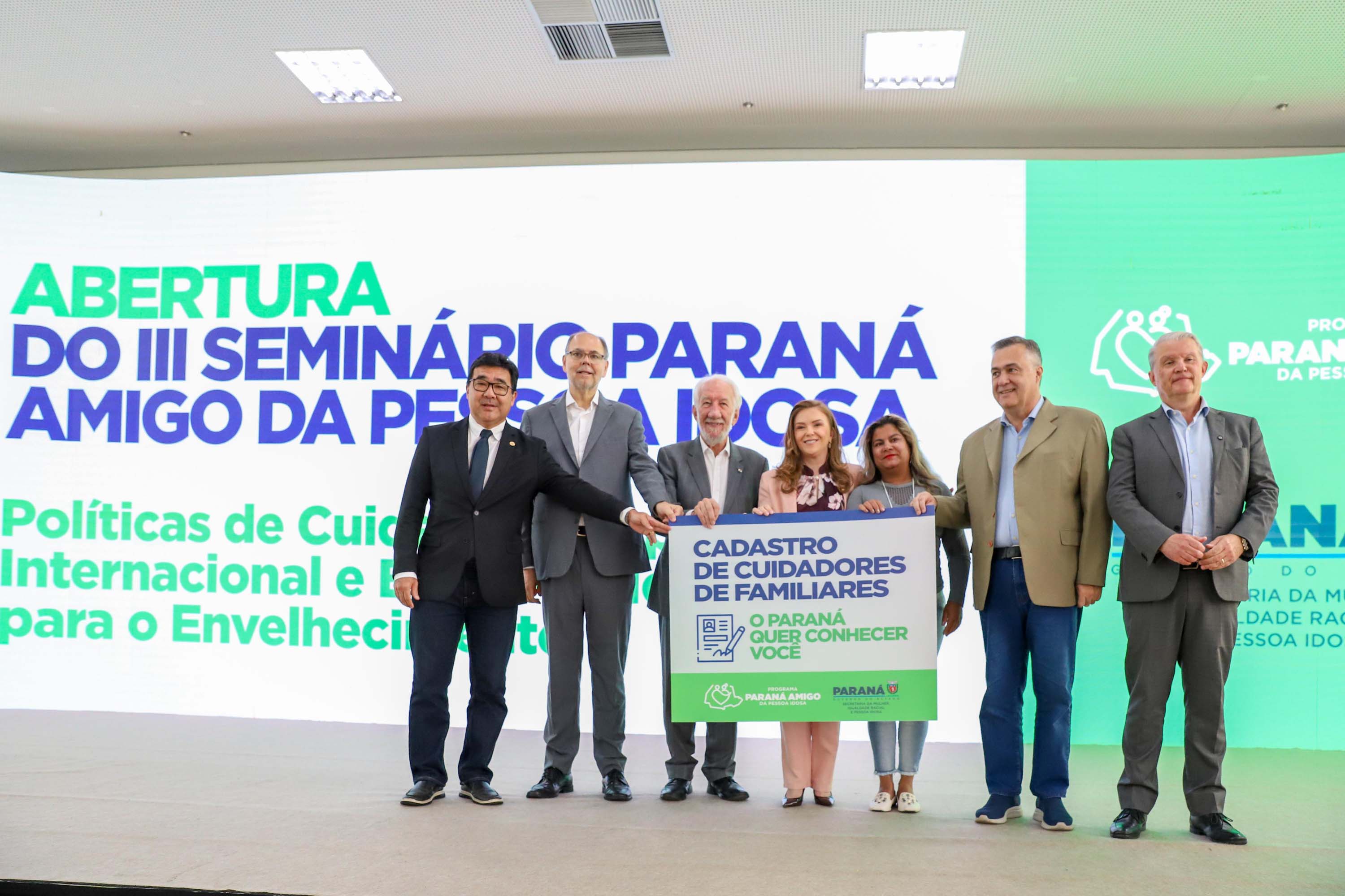 O Governo do Paraná lançou nesta segunda-feira (2), no Palácio Iguaçu, em Curitiba, o Cadastro do Cuidador Paranaense, iniciativa que inaugura uma nova etapa na organização e qualificação da política estadual do cuidado. O anúncio foi feito durante a abertura do III Seminário Paraná Amigo da Pessoa Idosa, que reúne especialistas nacionais e internacionais para discutir cooperação técnica, boas práticas e estratégias voltadas ao envelhecimento da população.